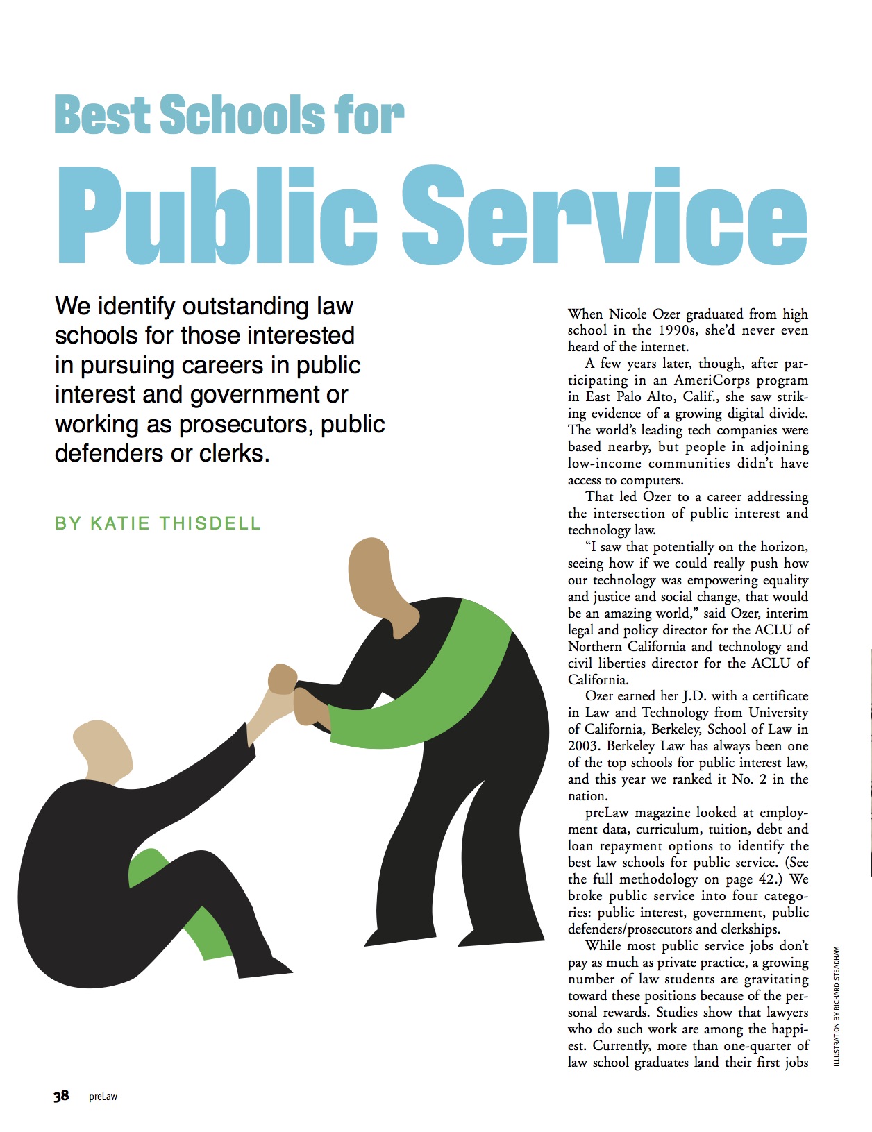 We identify outstanding law schools for those interested in pursuing careers in public interest and government or working as prosecutors, public defenders or clerks.