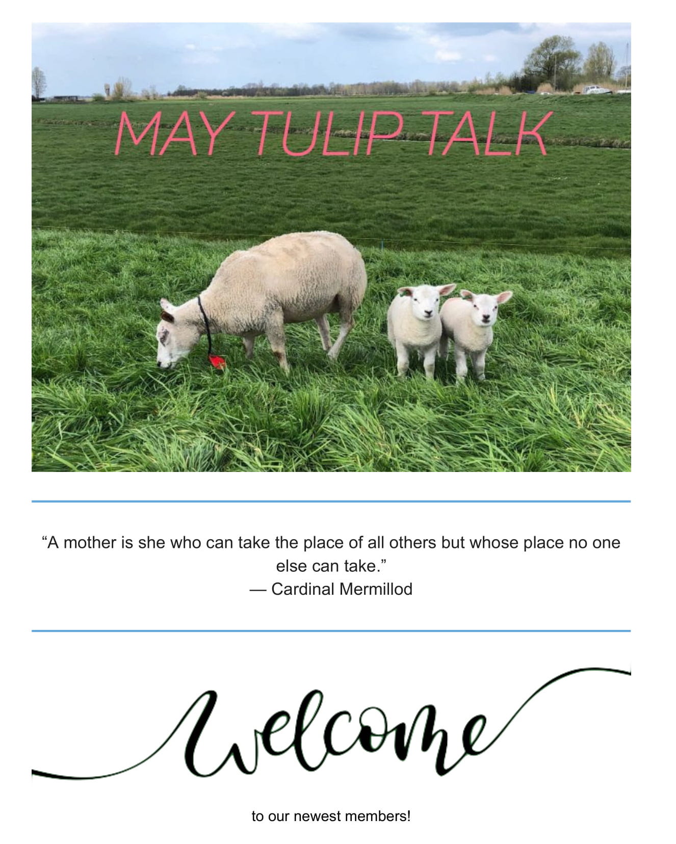 - Tulip Talk, a Mailchimp e-newsletter that I designed and edited for members of the American Women’s Club of Amsterdam.
