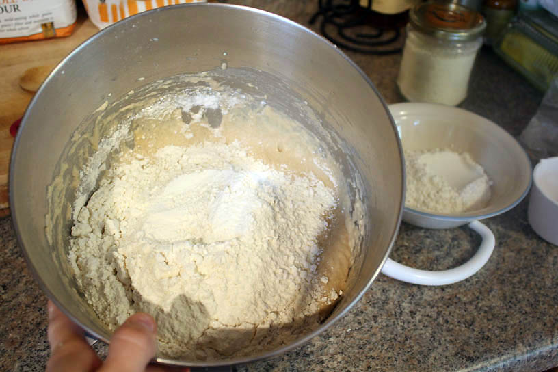 As recommended, I kneaded a few times by hand after the dough had hung out a few minutes in the mixing bowl. This lets you add any extra flour that the dough may need.